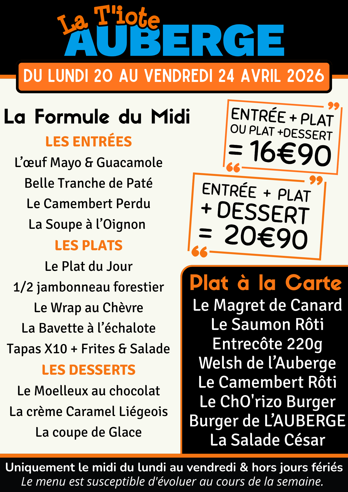 Régalez vous avec nos plats du jour et laissé vous tenté par nos suggestions sur L'ardoise sur place ou à emporter.