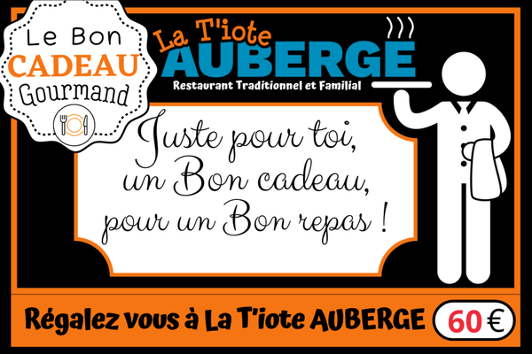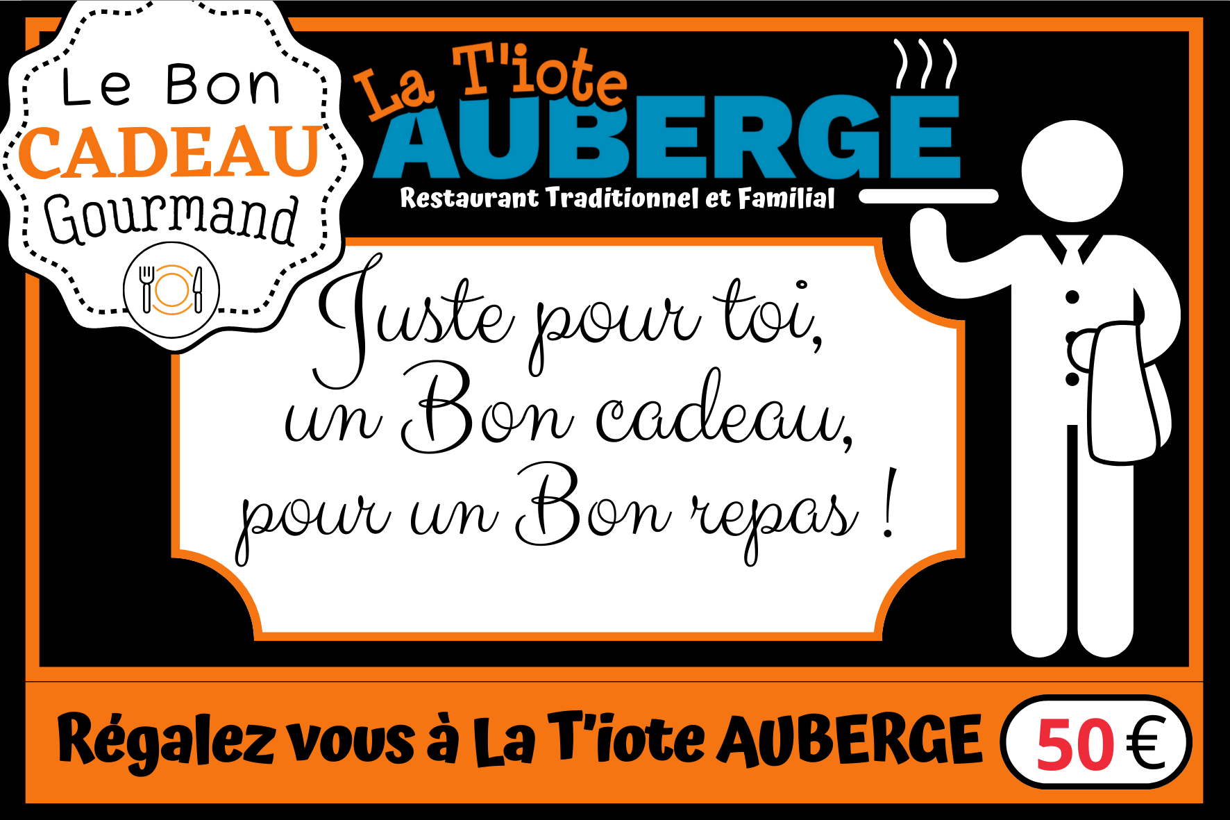 Offrez un " Bon Cadeau " d'une valeur de votre choix* , valable à la T'iote AUBERGE sur l'ensemble de la carte.